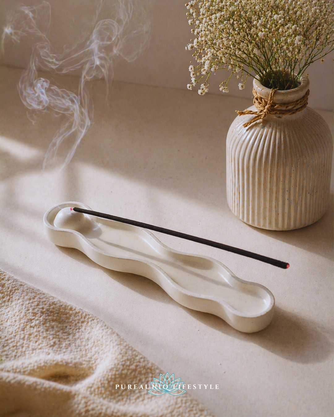 Elevate your space with our Incense Holder, designed to blend style and serenity. Its graceful wave form holds your incense sticks securely while catching ash neatly, making it both functional and decorative.